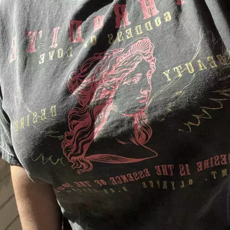 Celebrate your inner Greek goddess with the Aphrodite Shirt, crafted from 100% ring-spun cotton and featuring a premium garment-dyed finish for a soft, worn-in feel. Its relaxed fit makes it ideal for anyone seeking comfort and style, perfect for casual days, lounging at home, or layering for everyday wear. Add this versatile, high-quality tee to your collection today and enjoy effortless elegance every day. Shop now to elevate your wardrobe.